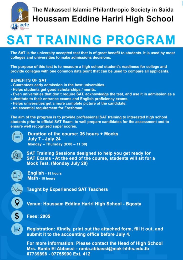 22 September استقبال تلاميذ صف الأول الأساسي في اليوم الأول Elementary School Leave a comment استقبال تلاميذ صف الأول الأساسي في اليوم الأول Recommended الوزير عامر البساط يرعى حفل تخرّج “ثانوية حسام الدين الحريري” – صيدا July 4, 2025 / admin Félicitations à tous nos élèves du baccalauréat français July 3, 2025 / admin HHHS KG3 Grad Promo 2025 July 2, 2025 / admin Cérémonie de dévoilement du Label CELF A June 30, 2025 / admin بدء التّسجيل لدورة تدريبيّة مكثّفة لطلّاب الصفوف الثانويّة عامّةً بكافة فروعها لإمتحان الSAT June 19, 2025 / admin