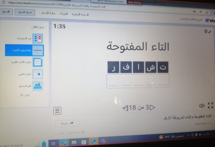 التعلّم من بعد# متعلّمو الصّفّ السّادس إنك ج اختبروا معلوماتهم وأكّدوا اكتسابهم لأهداف الفعل الماضي بعد الانتهاء من حلّ أسئلته كاملة وذلك من خلال لعبة هادفة وحماسيّة مكّنتهم من الإجابة بشكل فعّال
