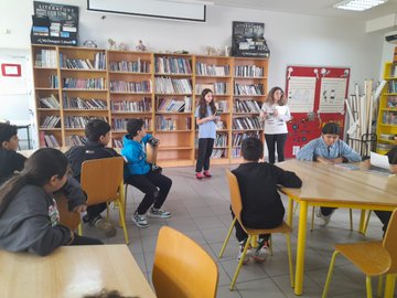 عرض متعلّمو الصّفّ الثّامن الفرنسي ب ، على أصدقائهم القصص الّتي قرأوها بشكل مميّز